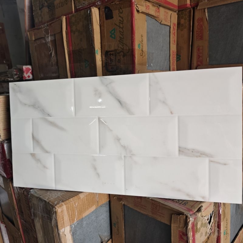 KERAMIK 30x60 BEVEL BATA MOTIF CARARA CUTTING GRANIT