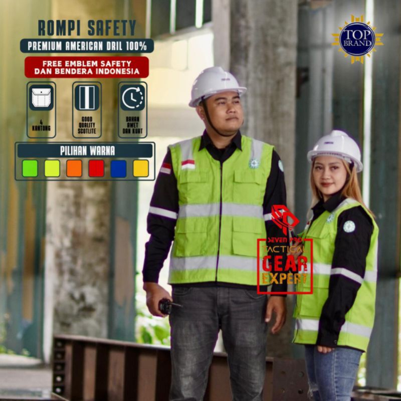 ROMPI SAFETY VEST/ROMPI SAFETY/ROMPI K3/BAHAN DRILL WARNA HIJAU XXXL/VEST PRIA-WANITA/SAFETY/PROYEK/K3/TERBARU