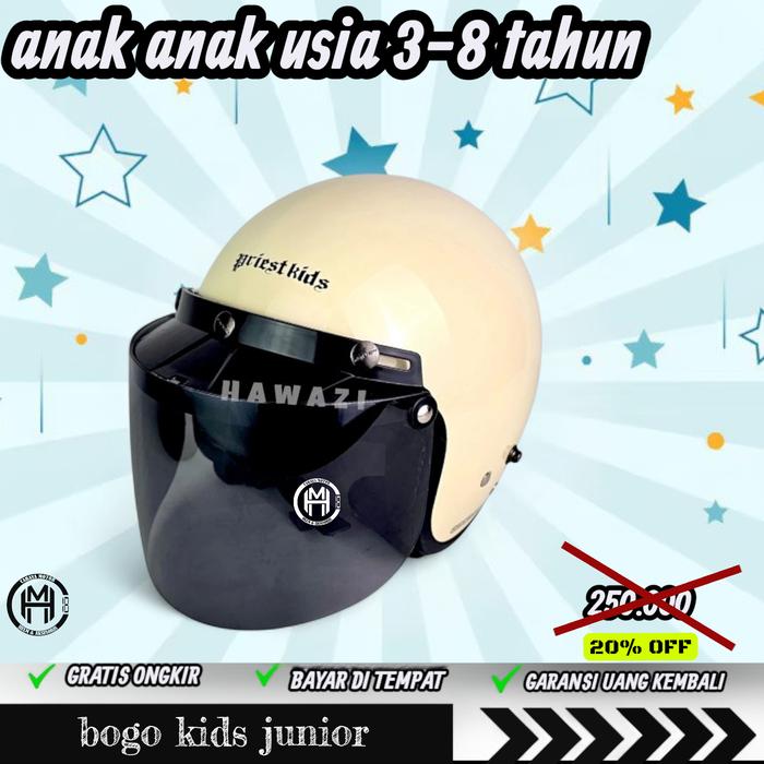 Helm Bogo Anak-anak / Helm Anak Retro Polos / Helm Retro Anak usian 3-6 tahun Motorcycle