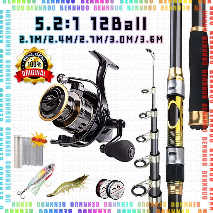 PROMO 【#Alat Memancing Lengkap 5 SET #】HE500-7000 Joran Pancing Kombo Fishing Set 2.1-3.6M Rod Spinning Fishing
