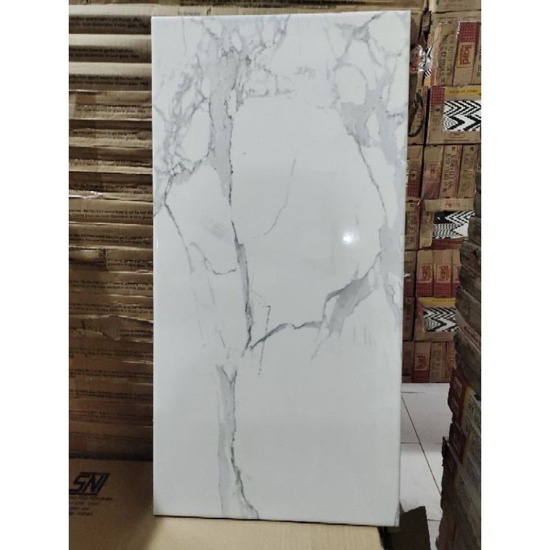 KERAMIK DINDING 30X60 GLOSSY PUTIH MARMER MOTIF CARARA-ALUR ABU MULIA
