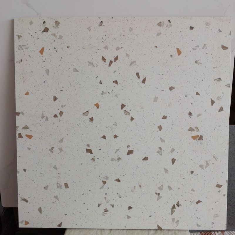 Keramik CUTTING 50x50 TERAZO ABU PUTIH CORAK CREAM MATT KASAR / teraso matt abu