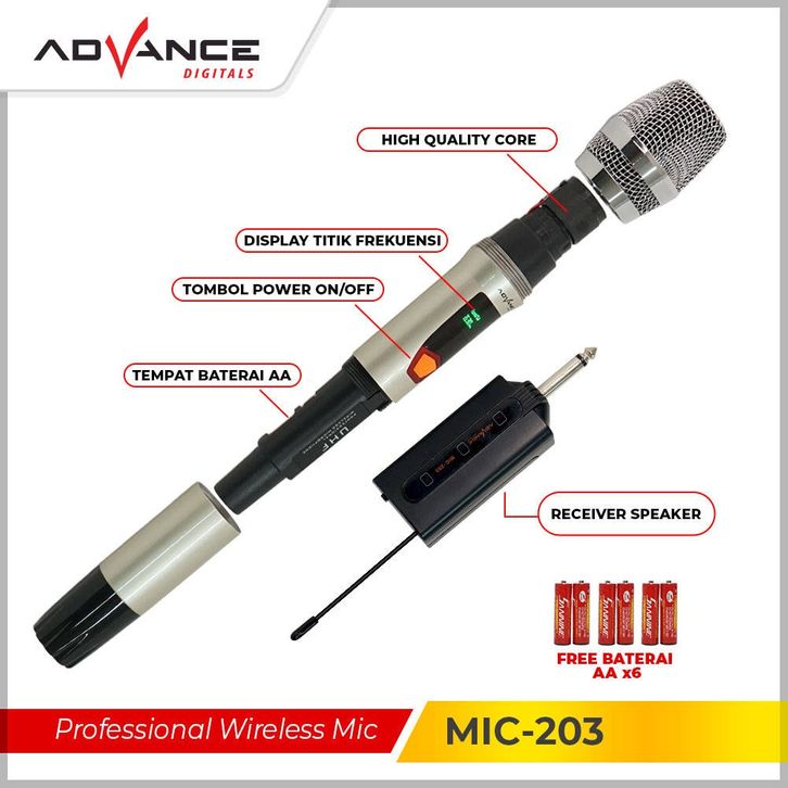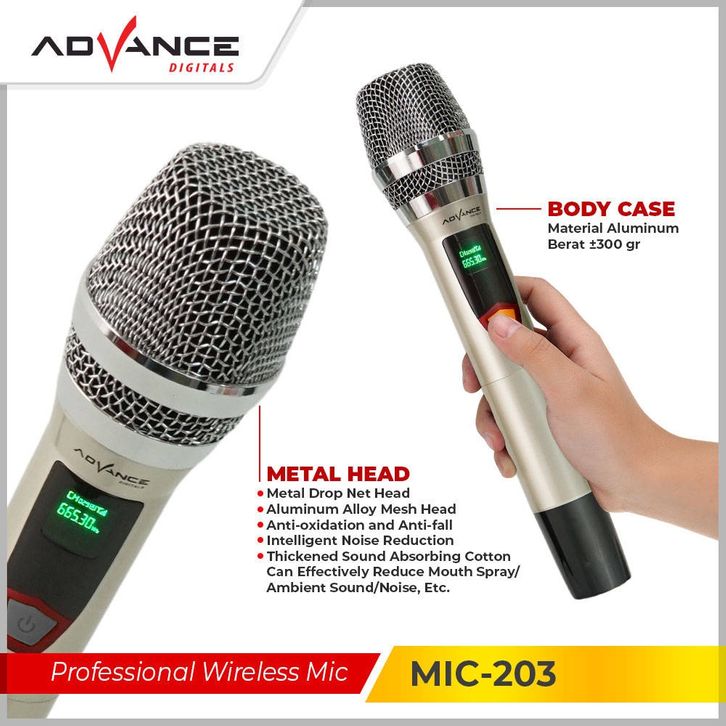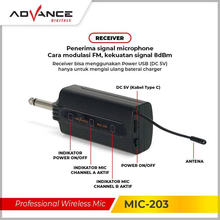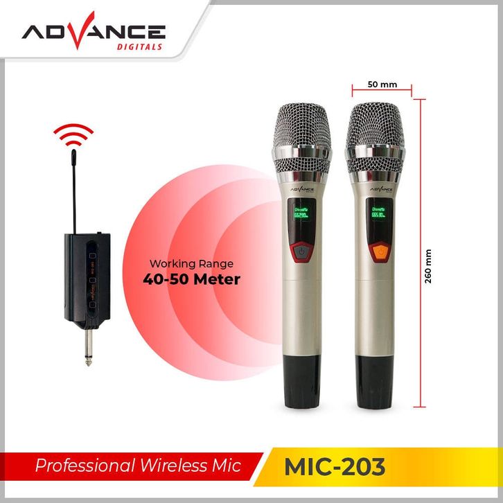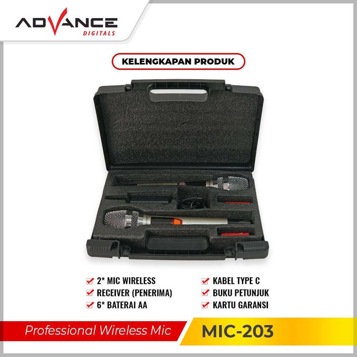 Advance Mic 203 Microphone Wireless 2 Mic Tanpa Kabel Original Garansi Resmi