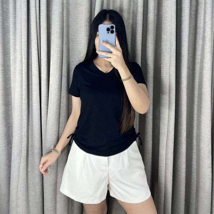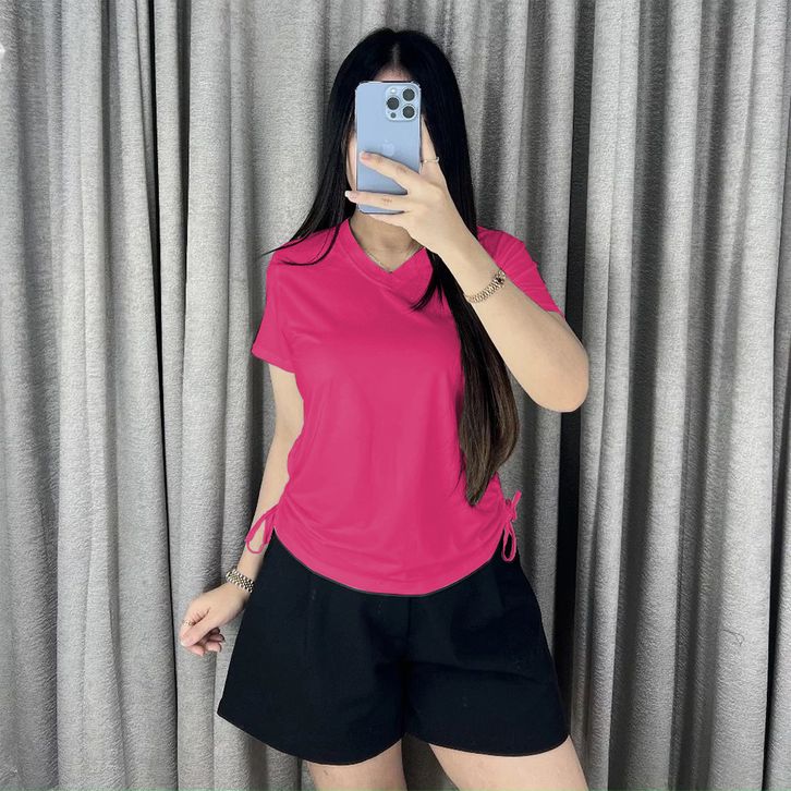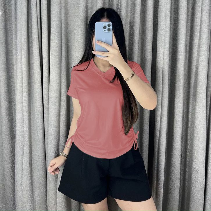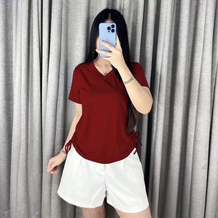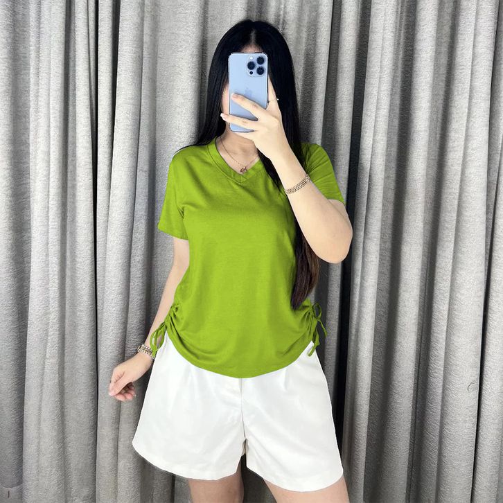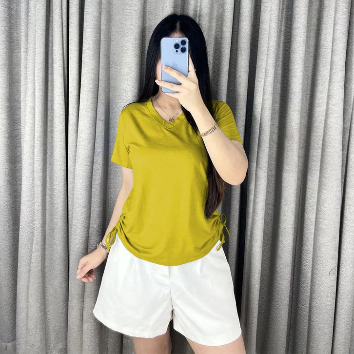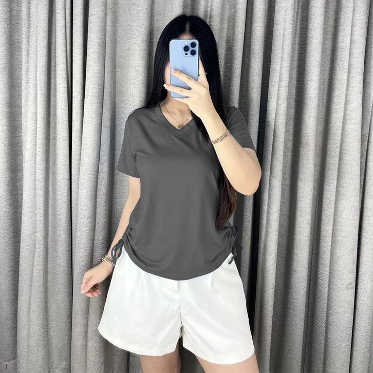 Kaos Oversize Wanita Serut Samping Leher Vneck Jumbo Atasan Lengan Pendek Wanita JUMBO 8016