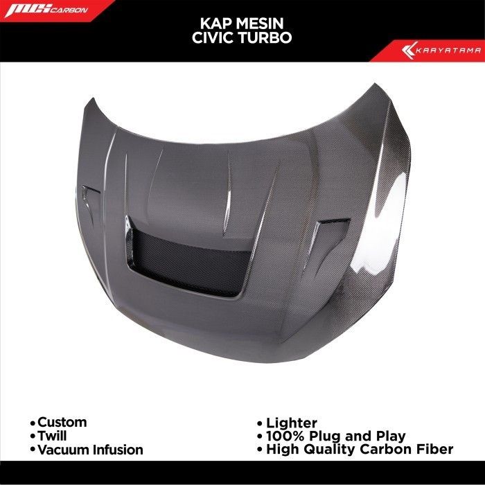 Kap Mesin Carbon Fiber Honda Civic Type R 2023–2025 up Custom 8 Style | Carbon by Karyatama