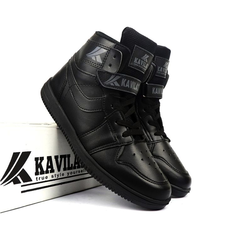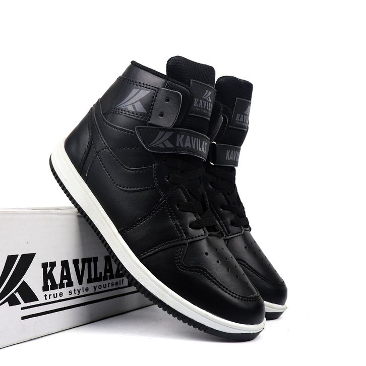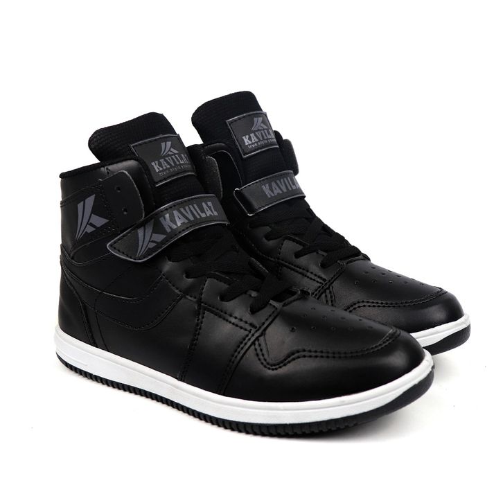 ( HARGA PROMO ) KAVILAZ True Style Yourself Sepatu Boot Anak Laki Laki Hitam Putih Sekolah Tali Combi Perekat