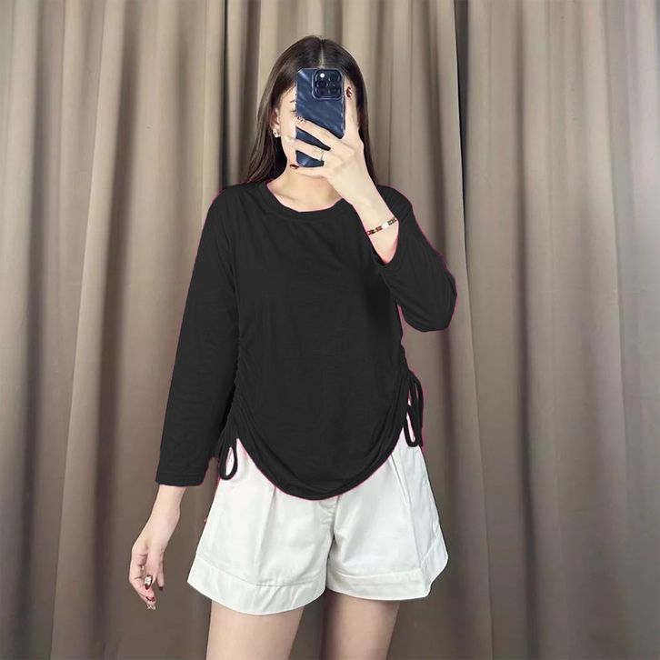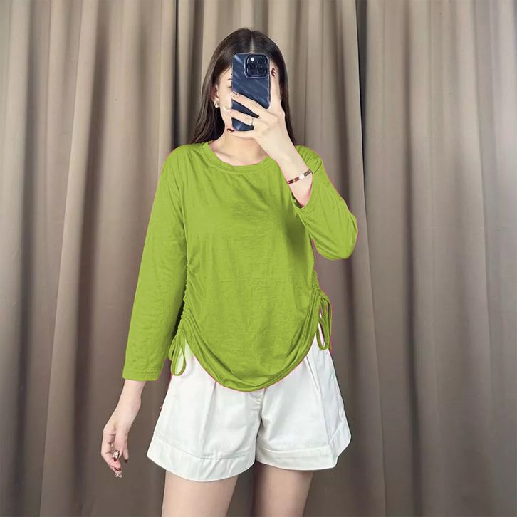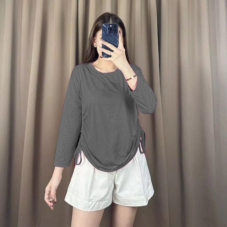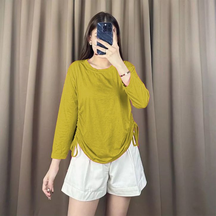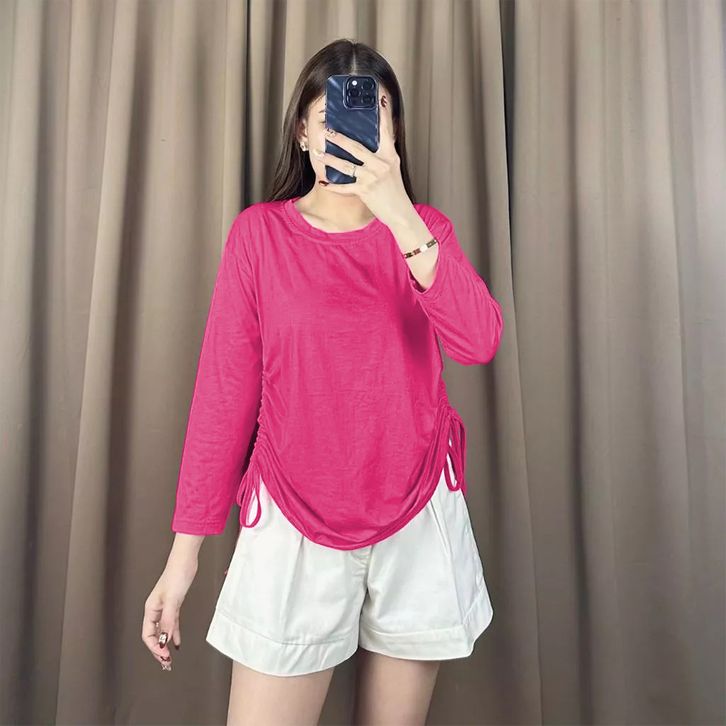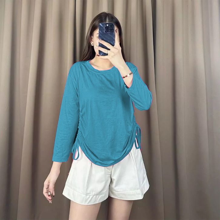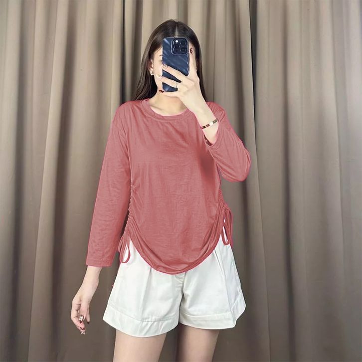 Atasan Double Serut Lengan Panjang Wanita Atasan Double Serut Lengan PanBaju Kaos Wanita Lengan Panjang Long Sleeve 8017