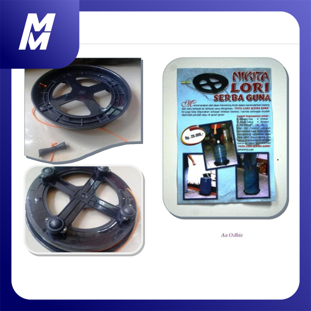 Troli Lori Tabung Galon Jerigen – Tatakan Roda Plastik Solid + Tali Tambang Penarik – Muat Tabung 3Kg & 12Kg, Galon, Emb