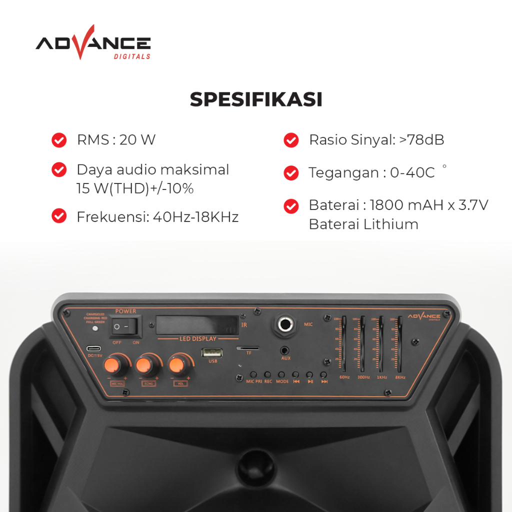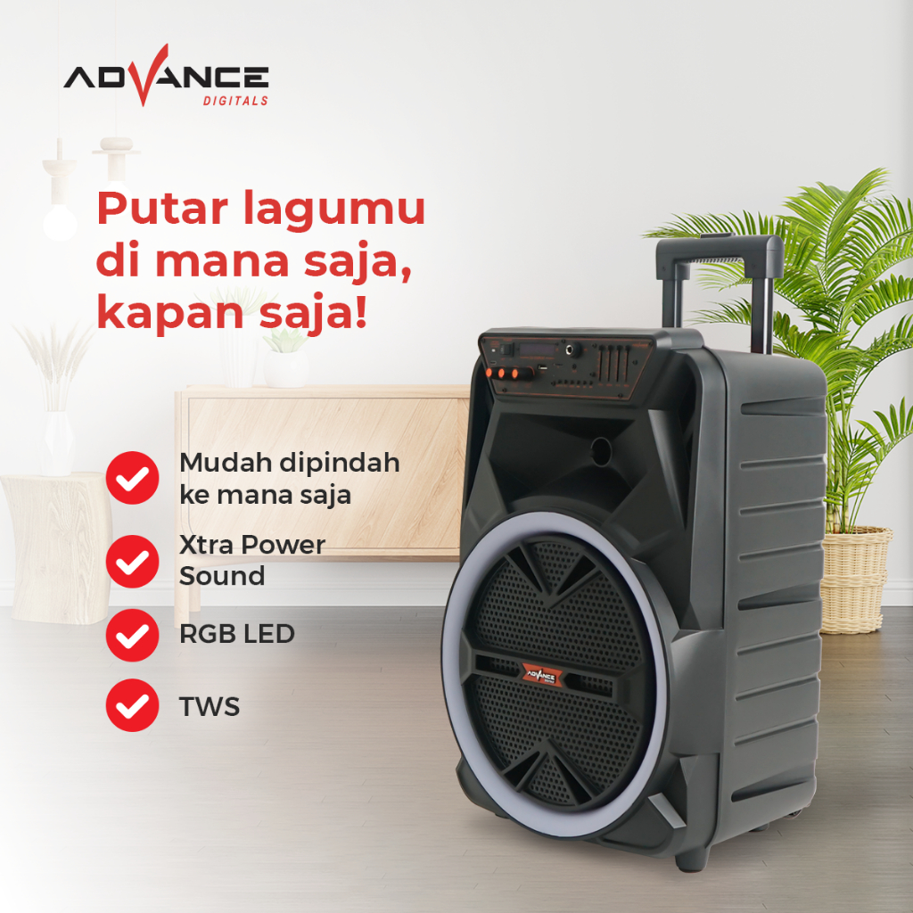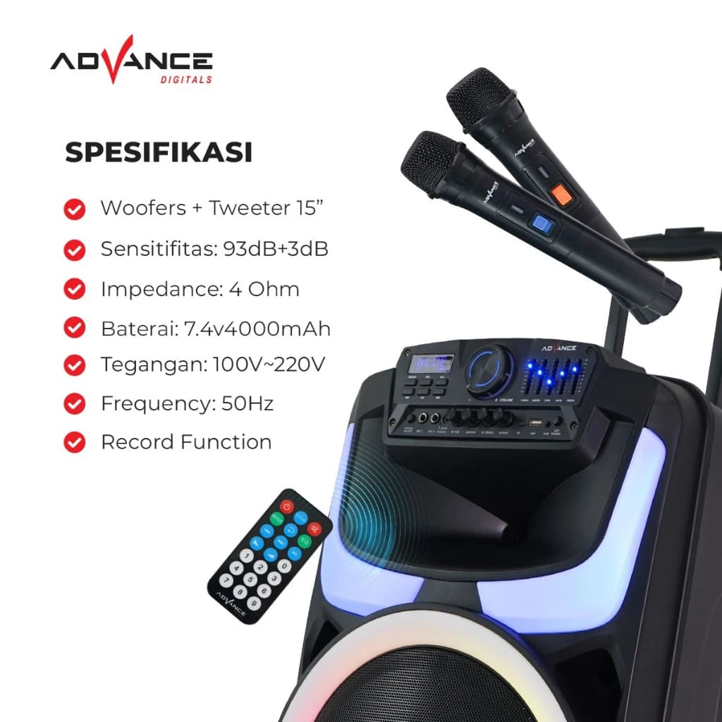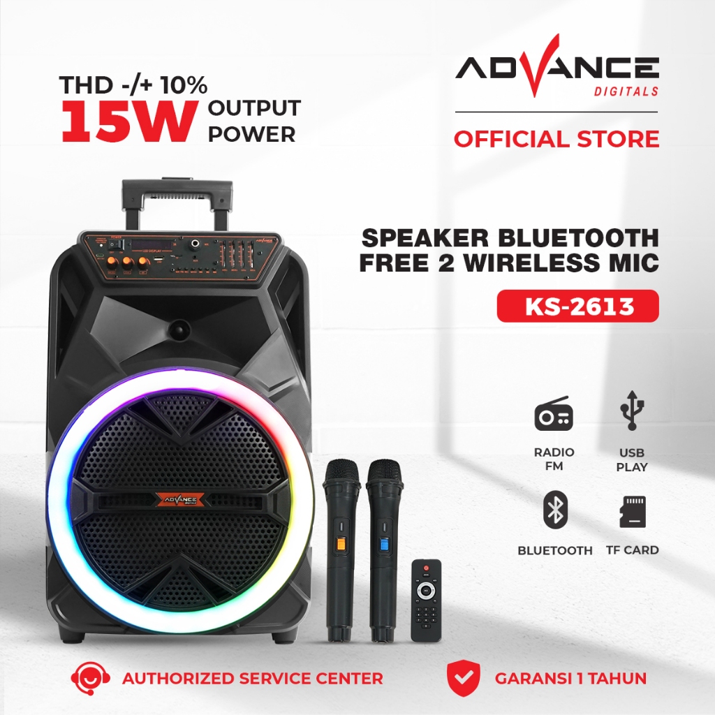Advance KK-1028 Speaker 15 Inch Super Bass 65W RMS with 2 Microphone Garansi Resmi 1 Tahun