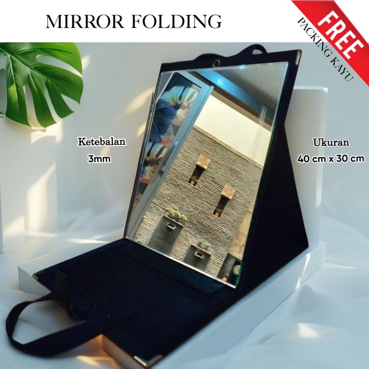Folding mirror cermin lipat semi frameless ukuran 30x25