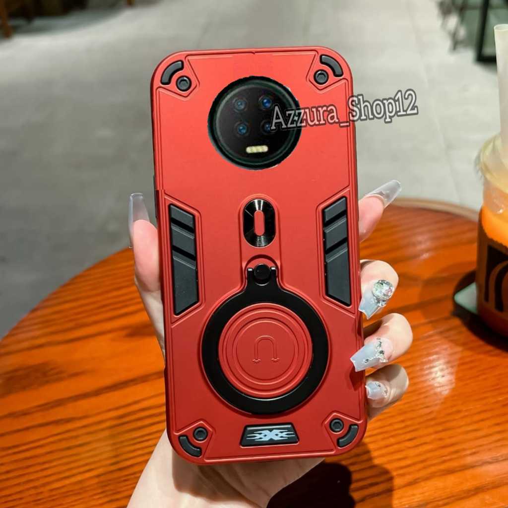 [Star] Casing HP Untuk INFINIX NOTE 7 Hard Case Pro Camera Carbon Fibre 360 Degree Rotasi Ring