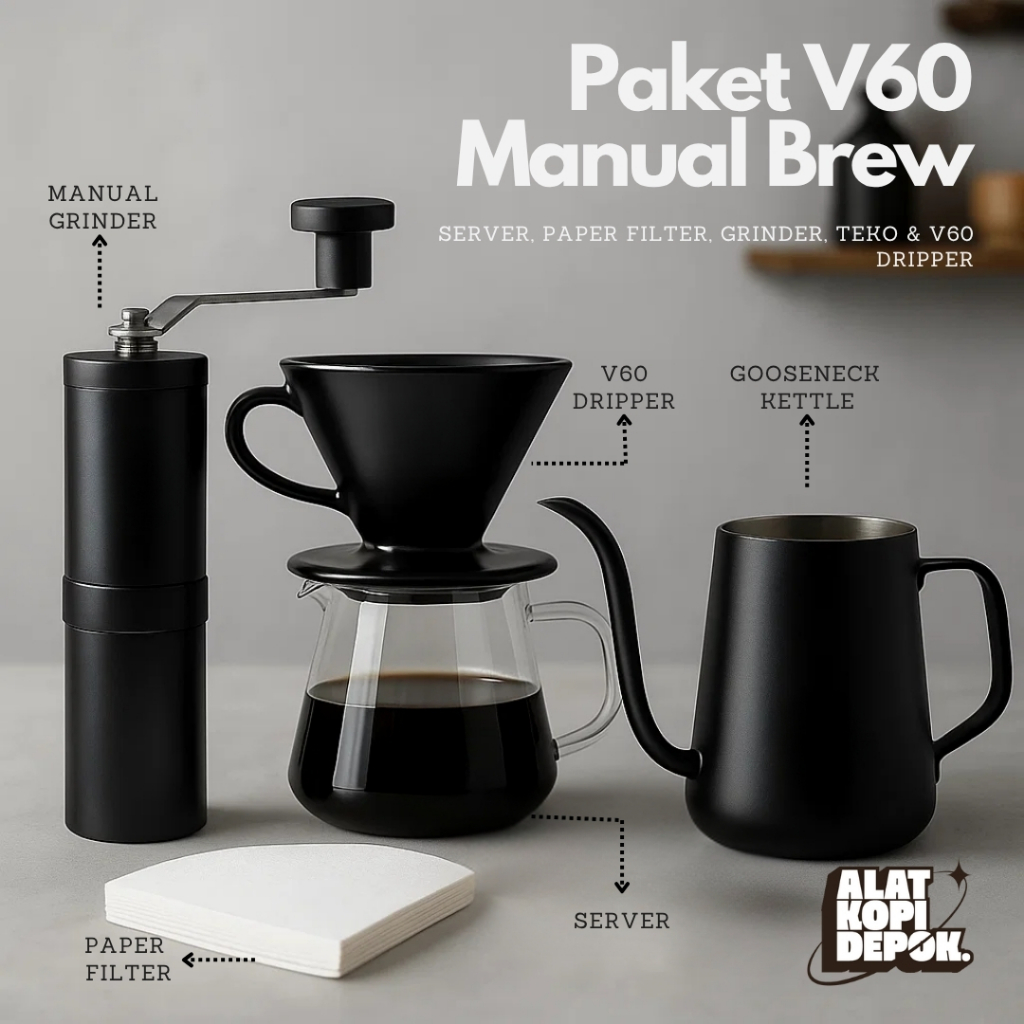 Paket Alat Kopi V60 Manual Home Brew Dripper (Teko, V60, Server, Paper Filter, Grinder) One Two Cups