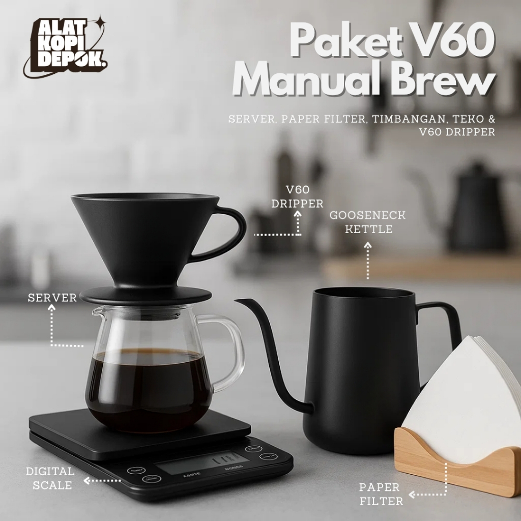Paket Alat Kopi V60 Manual Home Brew Set Dripper (Timbangan, Teko, Server, V60, Paper Filter) One Two Cups
