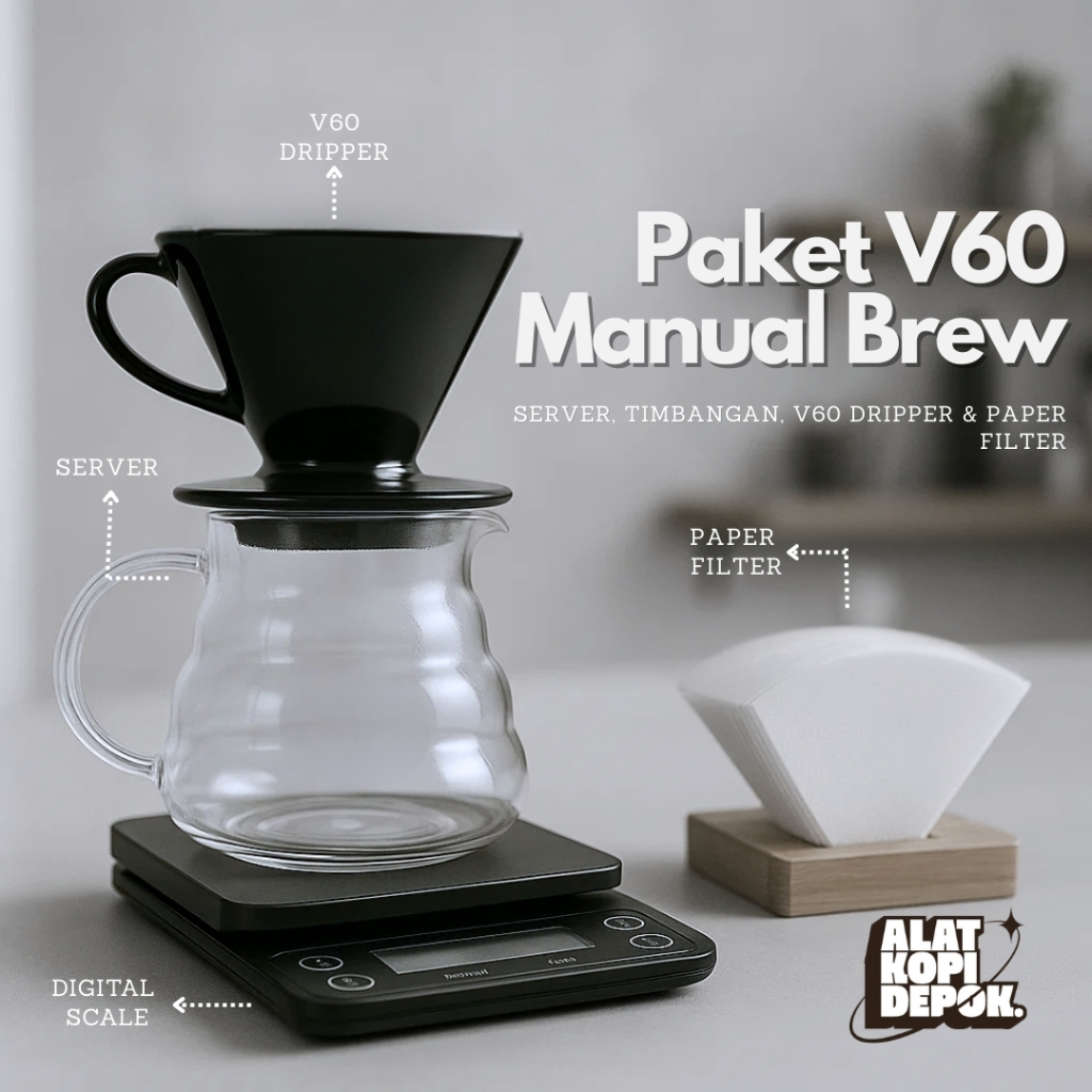 Paket Alat Kopi Home Brew V60 (Paper Filter, Server 350ml, Timbangan, V60 Dripper) One Two Cups