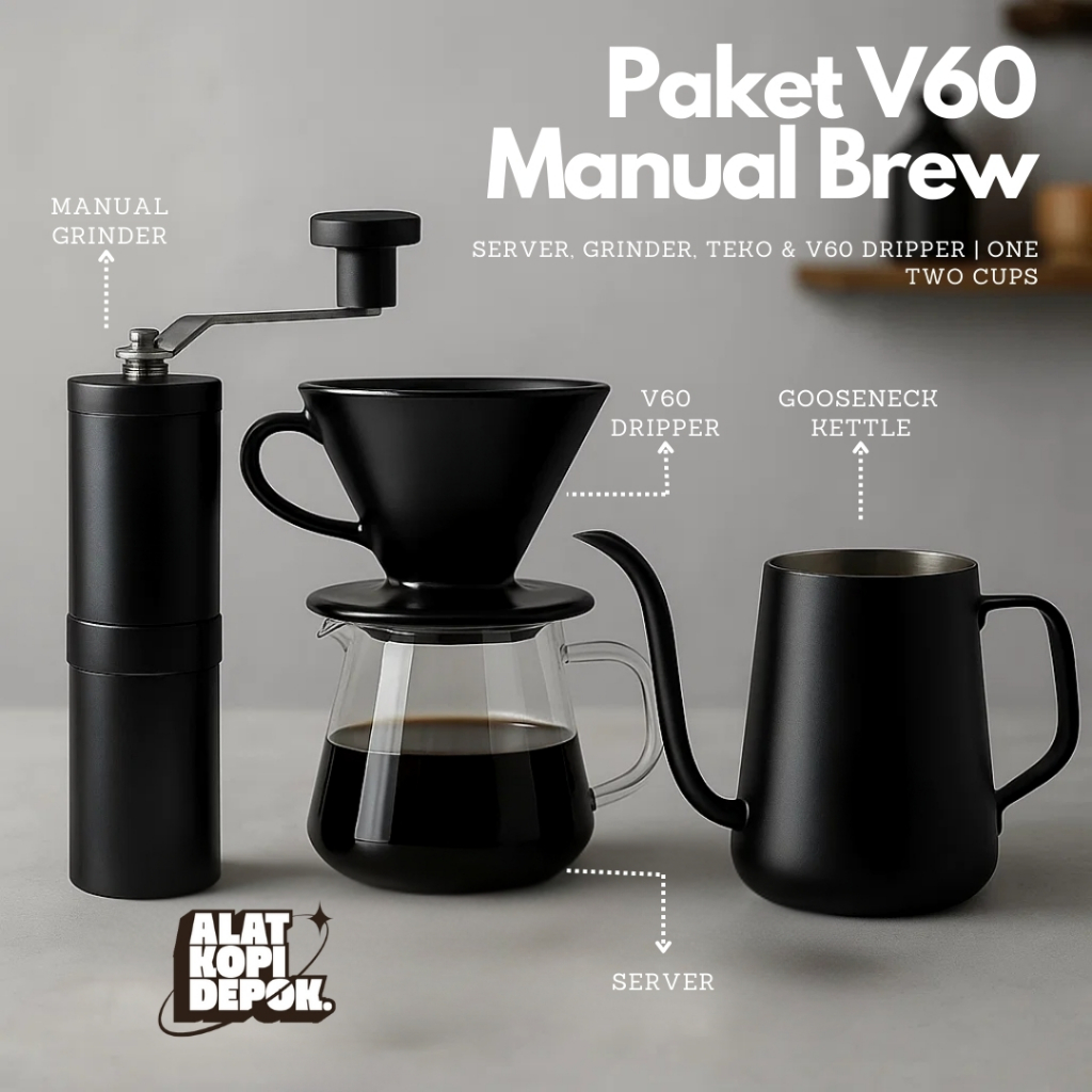 Paket Alat Kopi V60 Manual Home Brew Dripper Set (Teko, Server, V60, Grinder) One Two Cups
