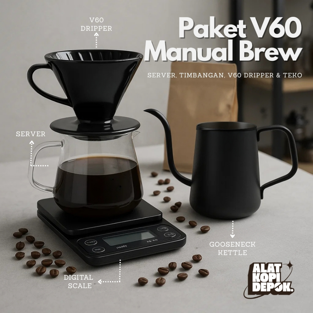 Paket Alat Kopi V60 Manual Home Brew Dripper Set (Teko, Server, V60, Timbangan) One Two Cups