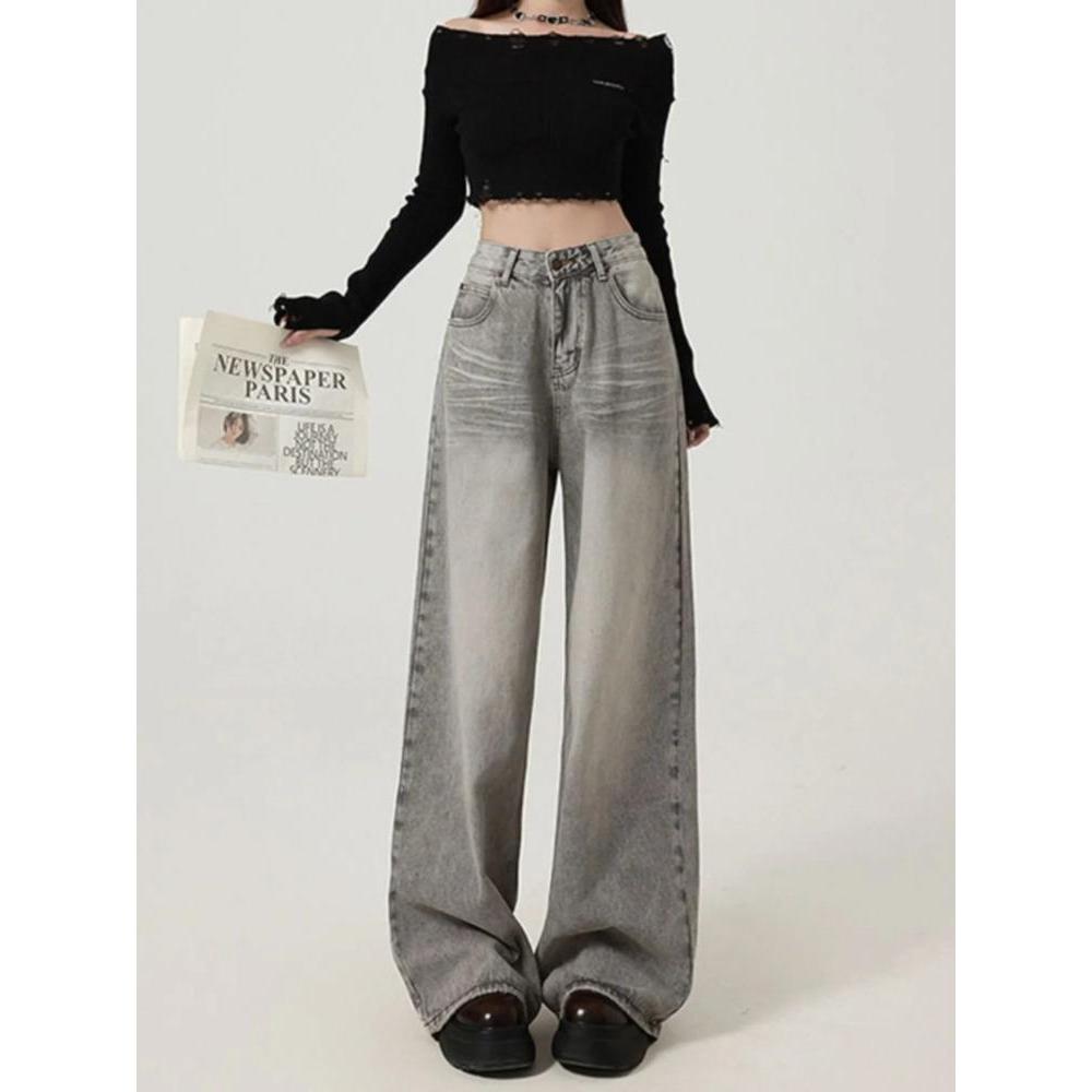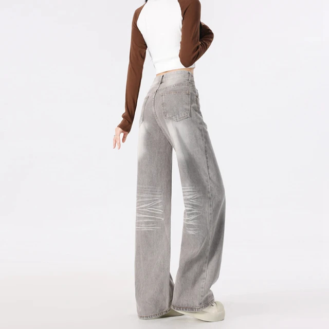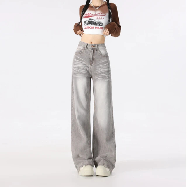 [Star] FLOWY - Emijia Women Grey Jeans Harajuku 90s Vintage Y2k Baggy Pants Jeans Denim Style Terlaris