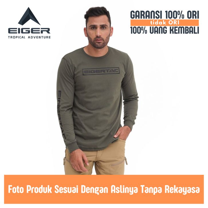 Kaos Panjang Pria Eiger Original Bahan Katun Warna Hijau Olive Kulka Ls Tees