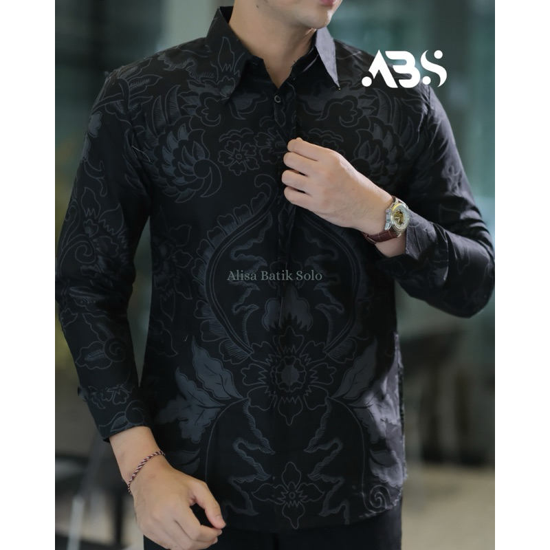 ALISA Mahkota Abu Kemeja Batik Pria Lengan Panjang Lapis Furing Katun