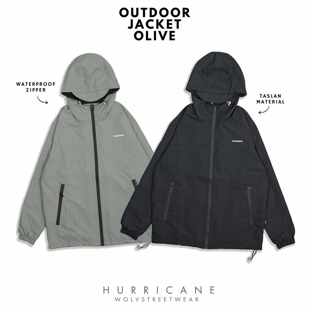 Jaket Outdoor Pria / Jaket Gunung / Jaket Hiking / Jaket Taslan Waterproof / Jaket Outdoor Hurricane Hitam Olive