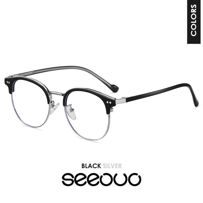 Seeouo Kacamata Antiradiasi Blueray Model Oval Stylish Browline Fashionable Metal+TR90 - BLACK SILVER