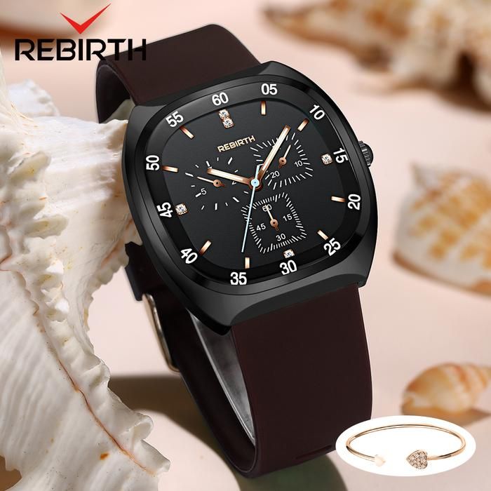 REBIRTH Jam Tangan Wanita Original Square panggilan unik Anti Air - Cokelat
