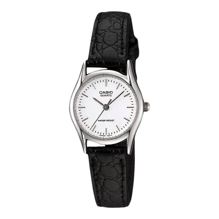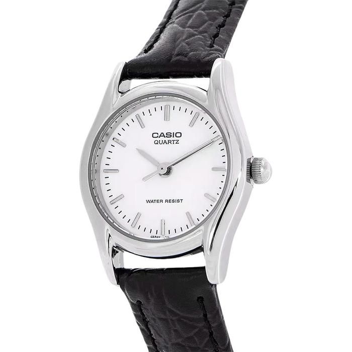 Casio LTP-1094E-7ARDF - Enticer Ladies - White Dial Black Leather