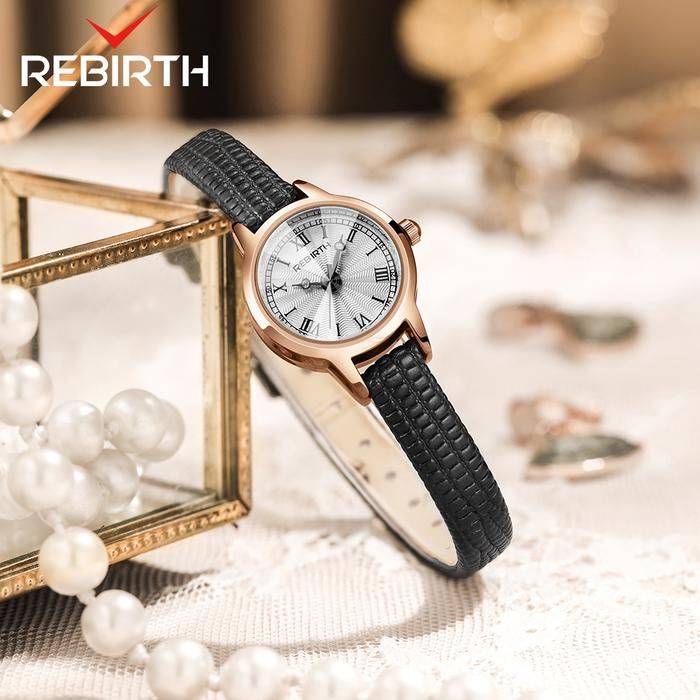 REBIRTH Jam Tangan Wanita Analog Versi Korea vintage Tali Kulit Jam - Hitam