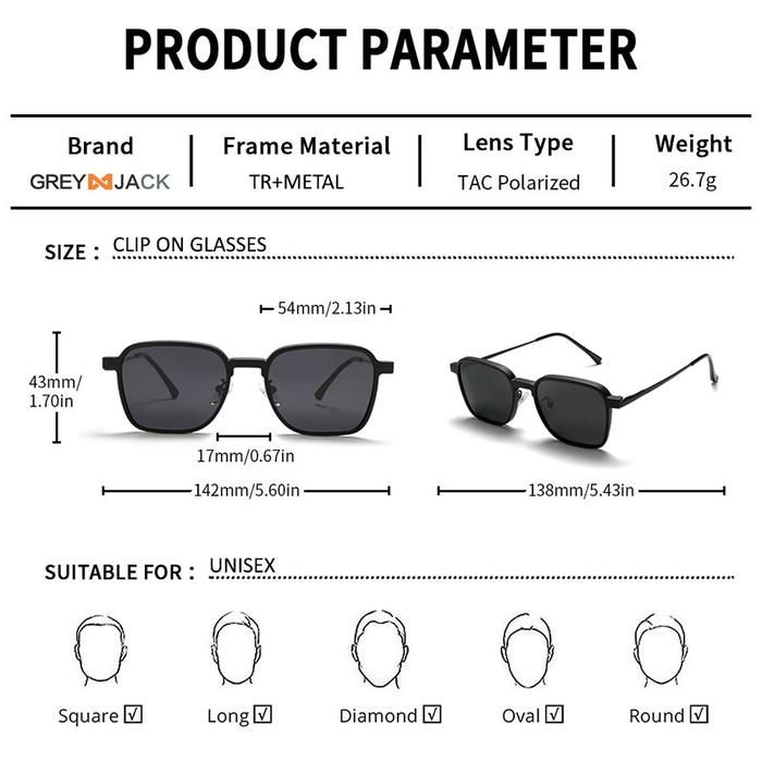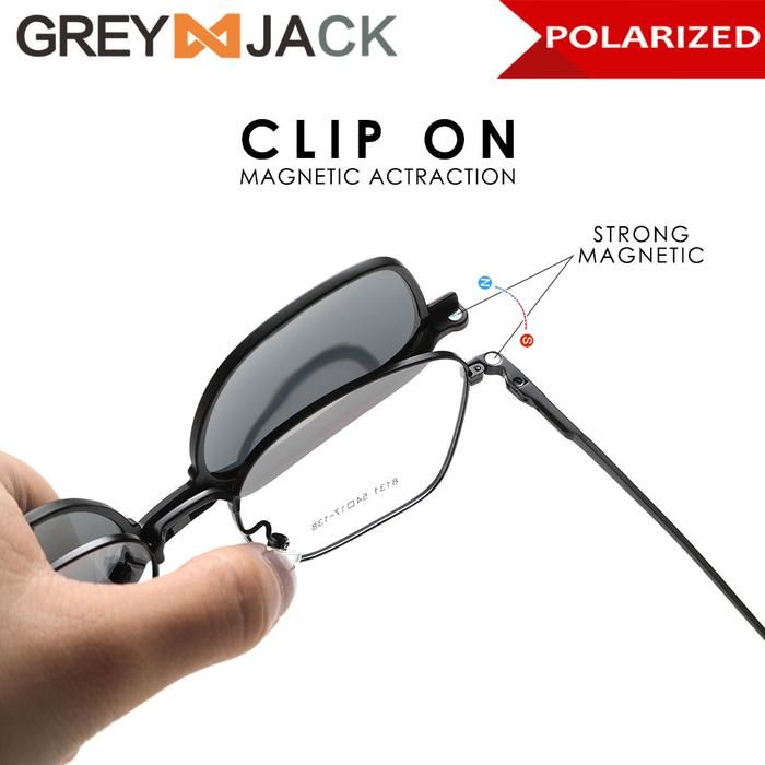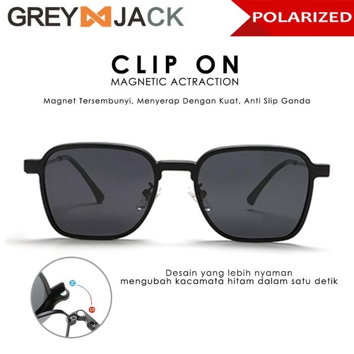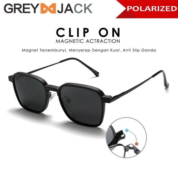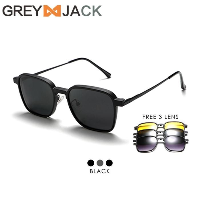 Grey Jack Kacamata Clip On 4in1 Free Lens Polarized Bahan Metal 8131 - BLACK, CLIP ON NORMAL