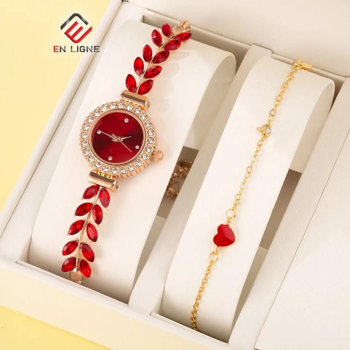 EN Ligne - Jam Tangan Wanita Model Gelang Serut Crystal Free Gelang - Merah