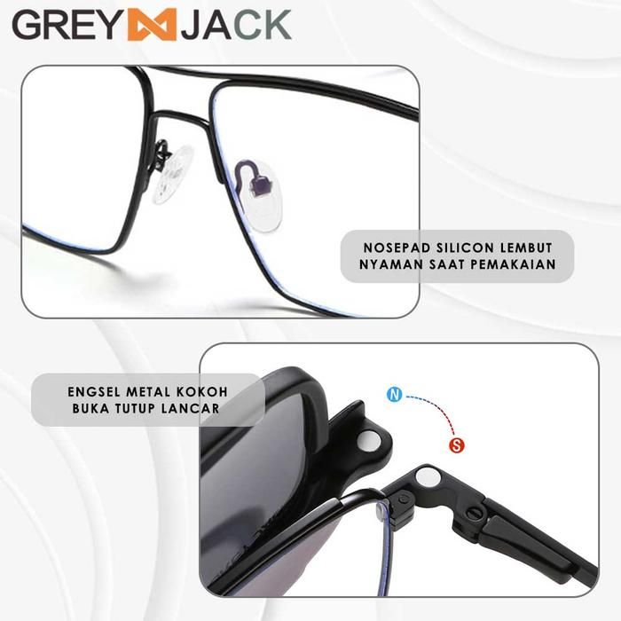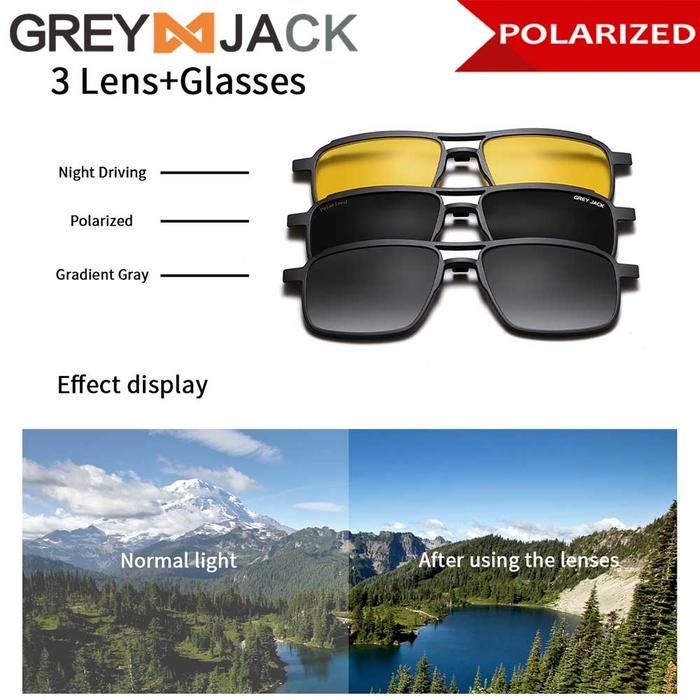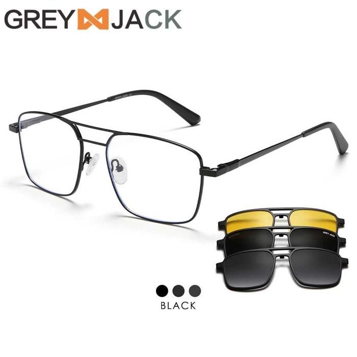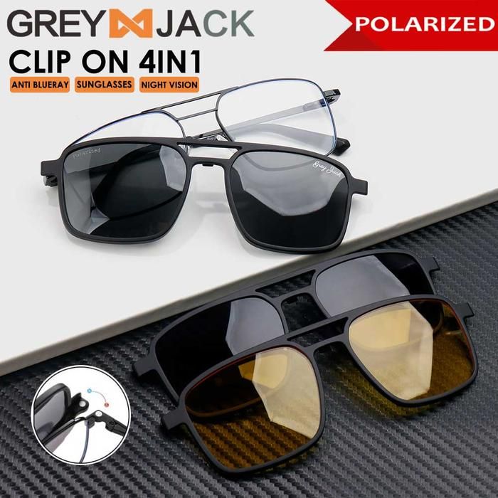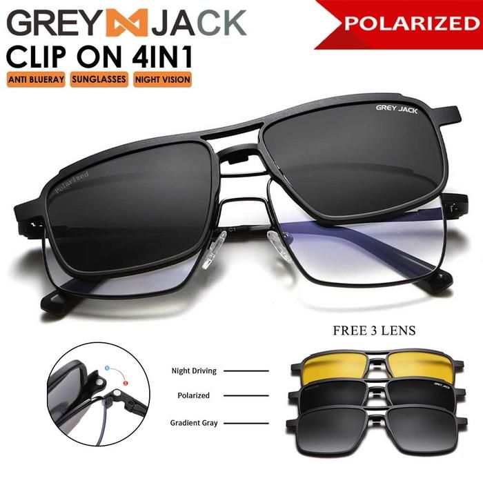 Grey Jack Kacamata Clip On Bahan Metal 4in1 Free Lens Polarized Night Vision - Hitam
