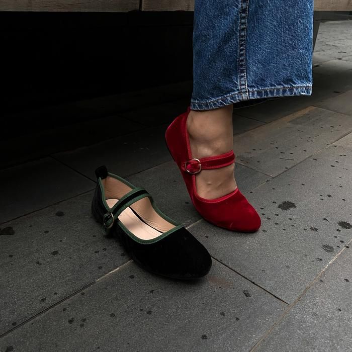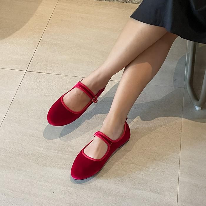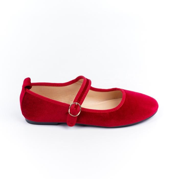Blow Lensi Velvet Mary Jane Flats Shoes BLWF 0014 - Maroon Velvet