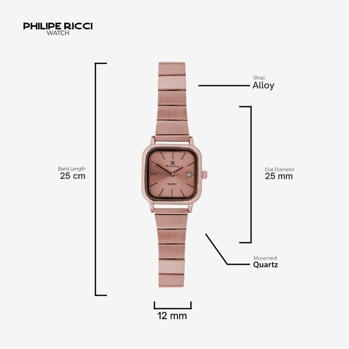 PhiLipe Ricci Jam Tangan Wanita Kecil Analog 100% Original 6450 - Rose Gold