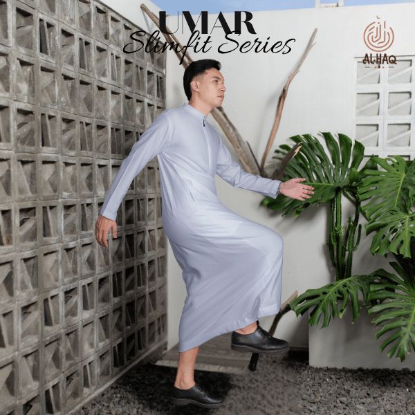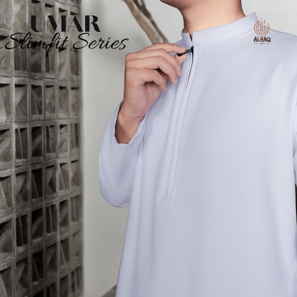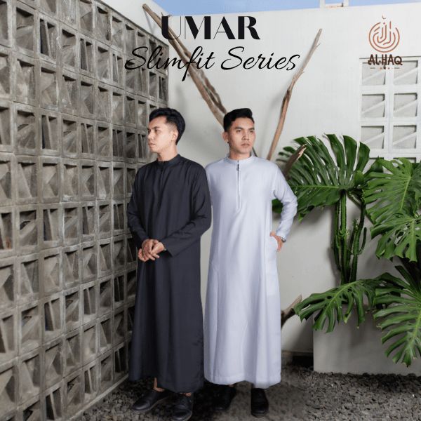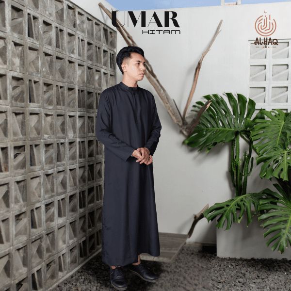 PROMO AL-HAQ Jubah Slimfit Pria UMAR Zipper Hitam | Gamis Pria Muslim Elegan Mewah Modern inamnh