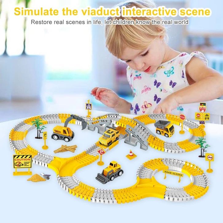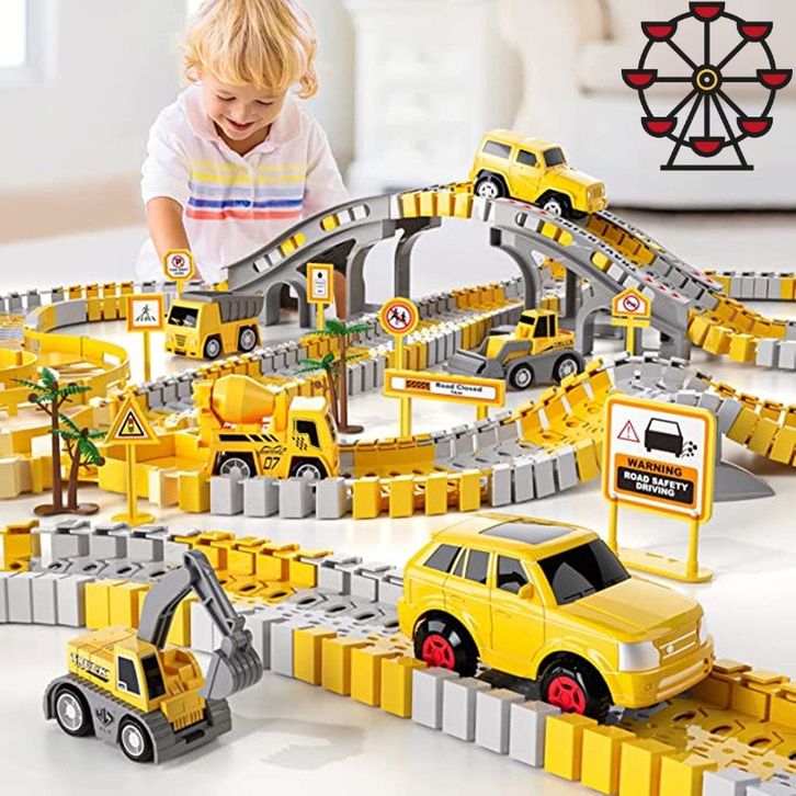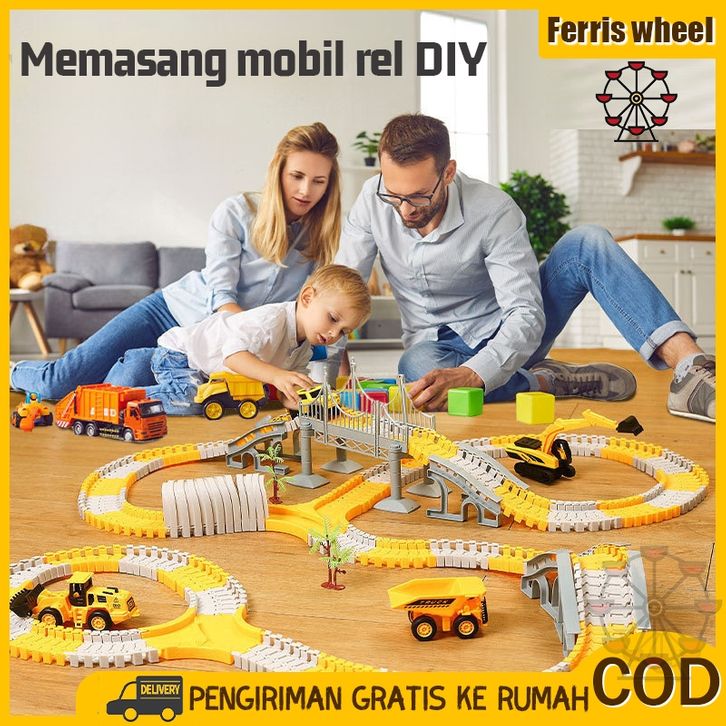 TERLARIS Ferris Wheel Trek Balap Konstruksi 305PCS untuk Mainan Anak-Anak Kereta rel rakitan DIY 2 listrik kereta