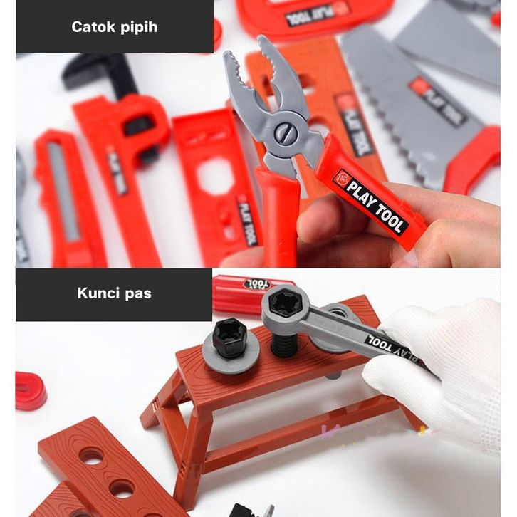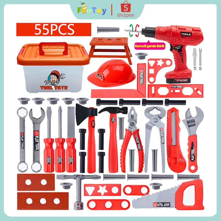 TERLAKU FUNTOY 38/39/41/42 PCS Alat Perbaikan Mainan Berpura-pur Insinyur Simulasi Anak-anak Toolbox Bor Listrik