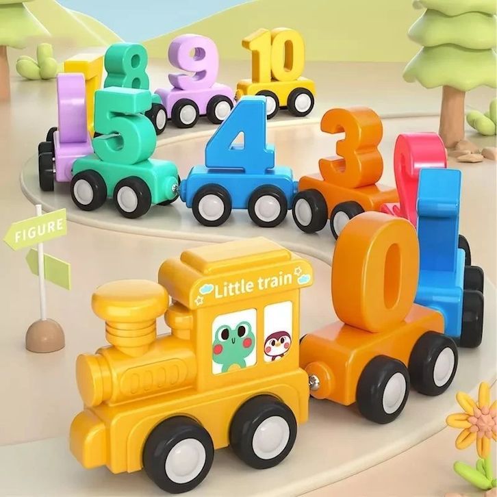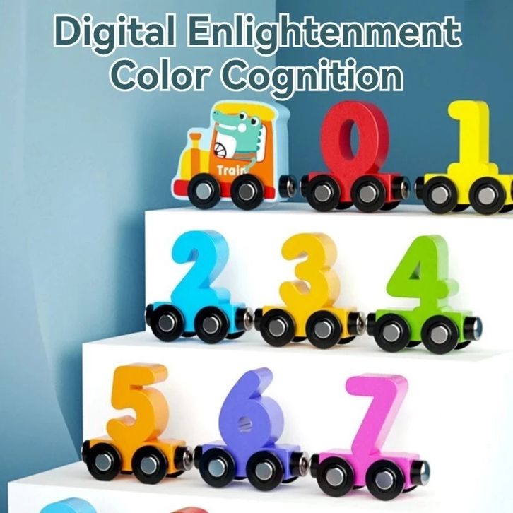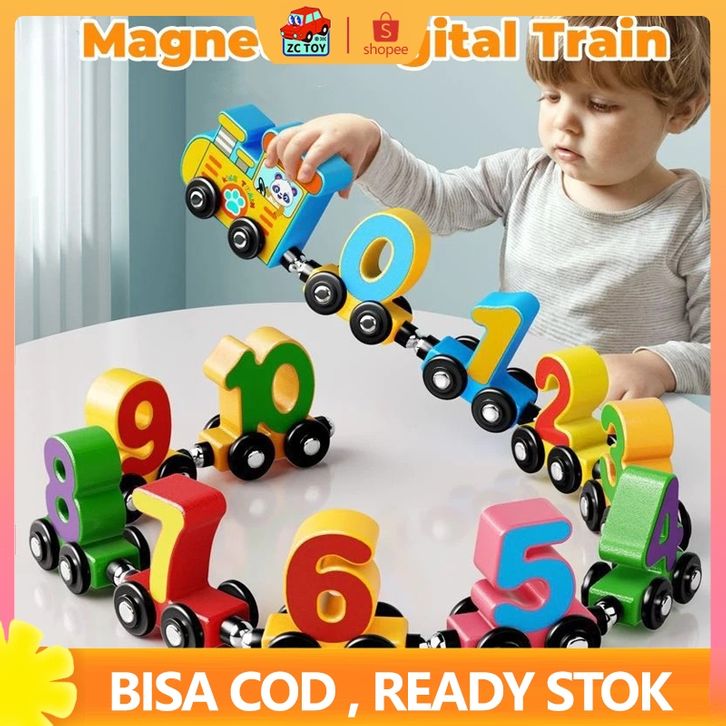 TERLAKU ZCTOY Mainan Anak Kayu Magnet Keretadigital hewan Kereta Api Beroda 1-10 Number Berwarna-warni Set Untuk