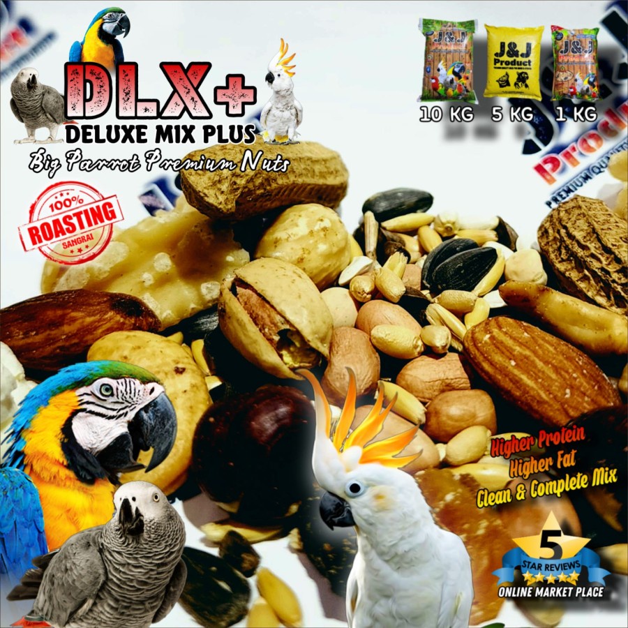 Pakan Burung Macaw Afgrey Amazon Big Parrot J&J Deluxe Mix Plus DLX+ 1kg