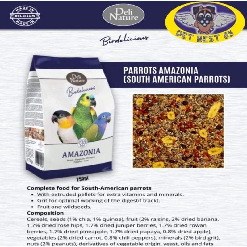 Deli Nature Birdelicious Parrots Amazonia 750gr Makanan Burung Parrot Amazon / South American Green Cheeked Parrot-Red L