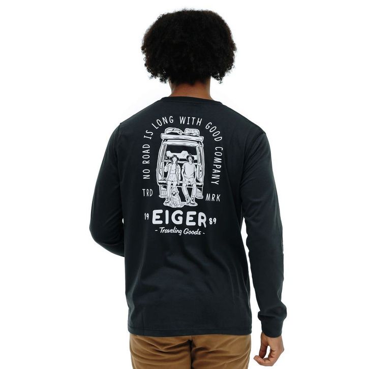 Kaos Panjang Pria Eiger Original Bahan Katun Warna Hitam Rivulet Ls Tees