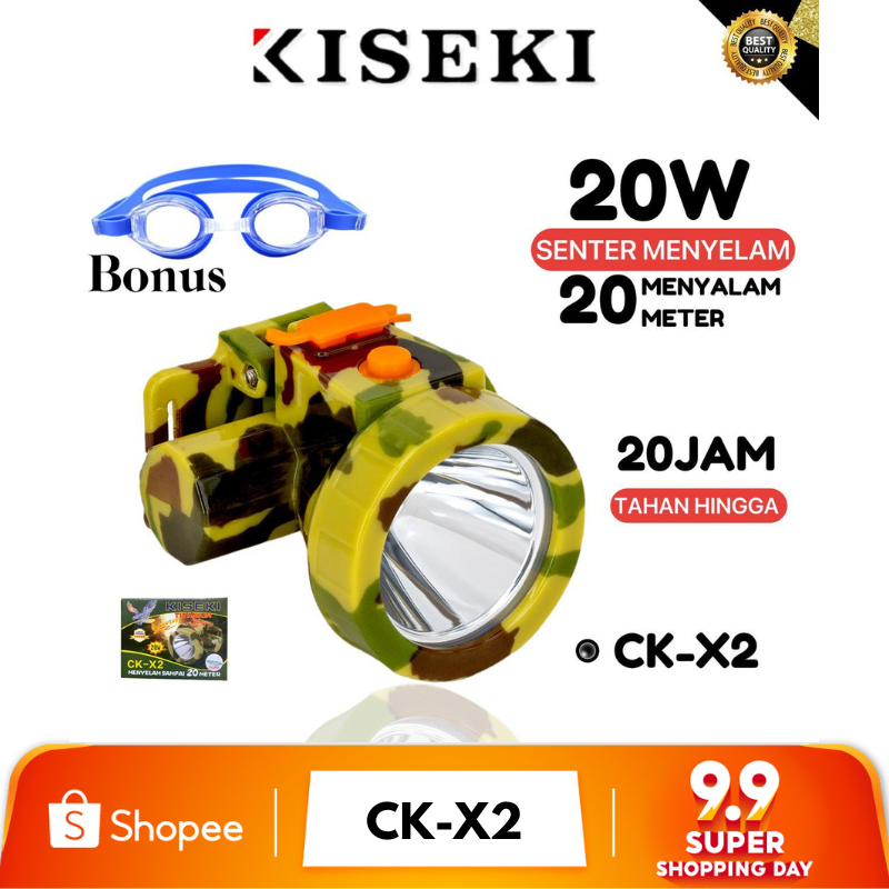 Kiseki Senter Kepala Ck-X2 20w Free Kacamata Renang Senter Kepala Selam / Headlamp Diving 20meter Cahaya Putih