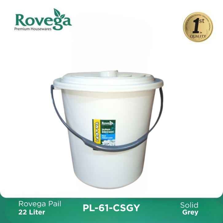 Rovega Ember Plastik / Solid Pail 22 Liter Dengan tutup New Color Grey PL-61CS-GY