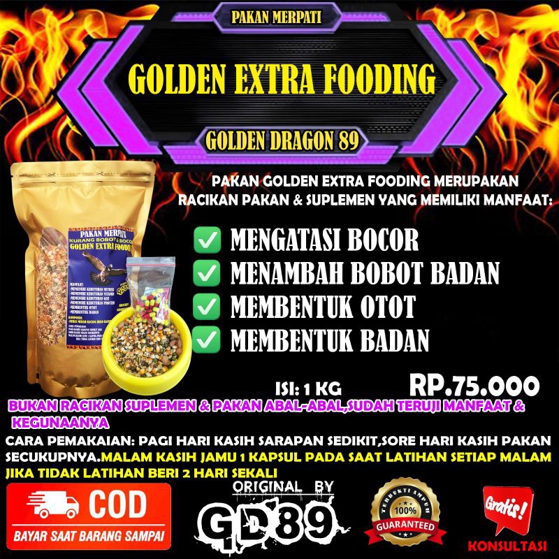 PAKAN MERPATI KURANG BOBOT & BOCOR GOLDEN EXTRA FOODING 1KG BY GOLDENDRAGON89