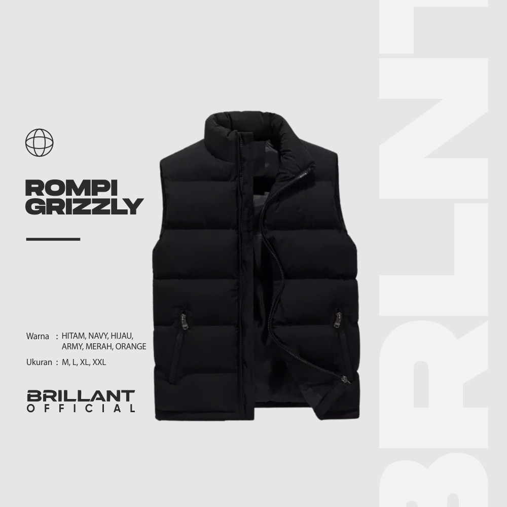 Grizzly Rompi Pria Dewasa Polos 1 Warna Garis Hitam Navy Army Orange Oren Ukuran Size M L XL XXL Jaket Jacket Rompi Vest Bodyvest