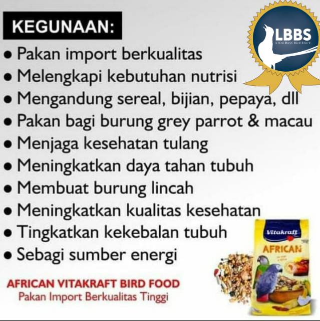 VITAKRAFT AFRICAN Pakan African Grey Parrot dan Paruh Bengkok Medium Besar Lainnya