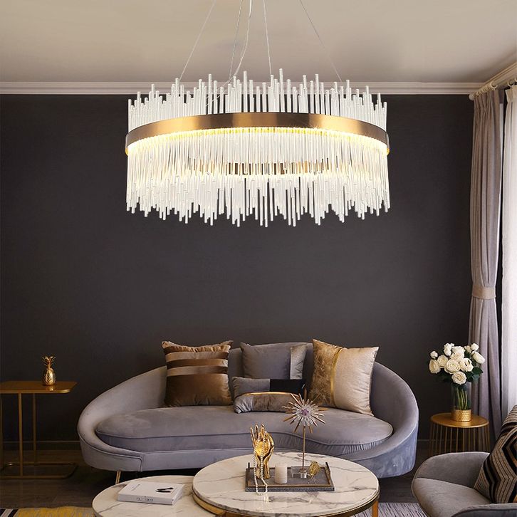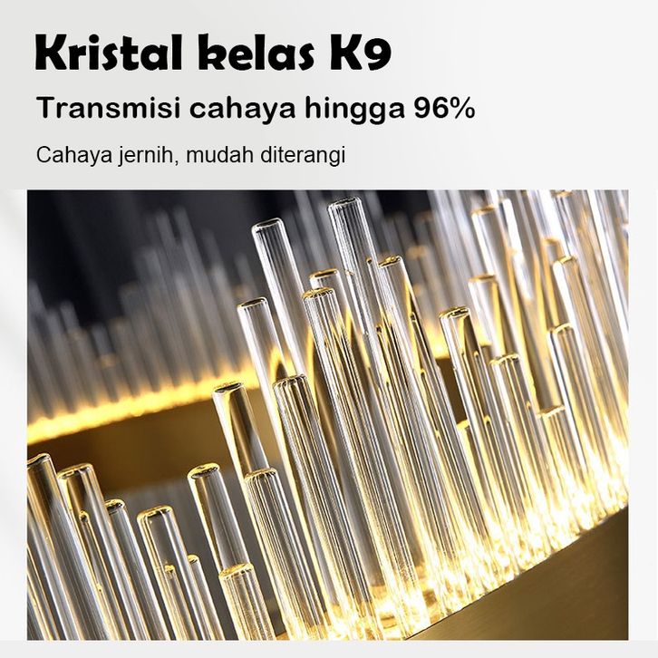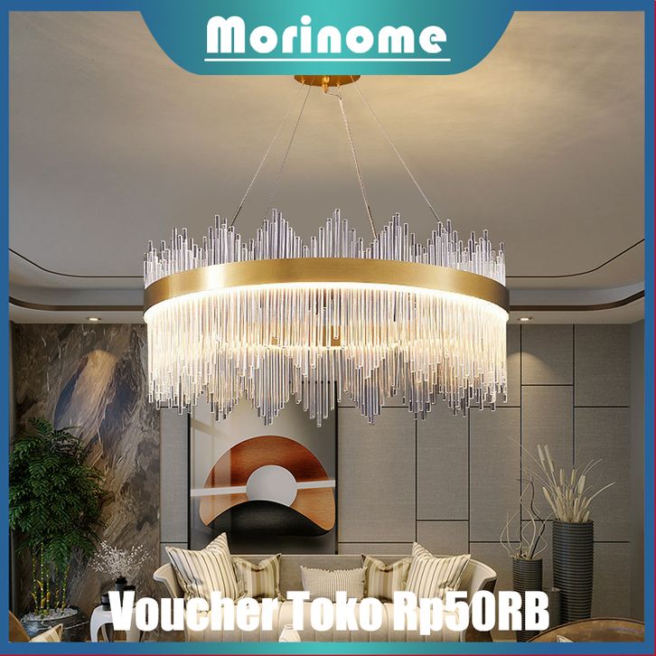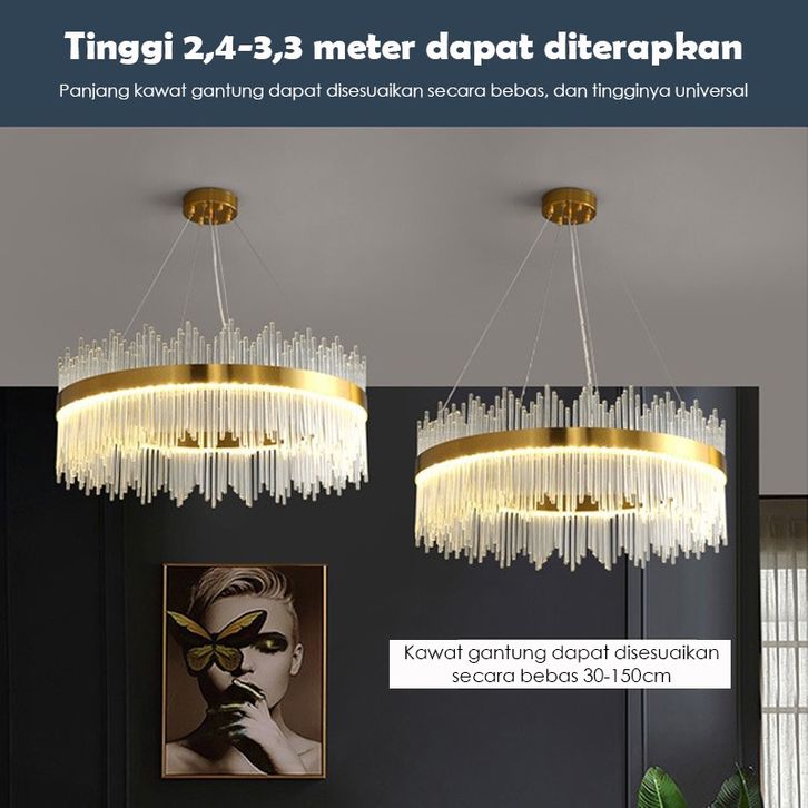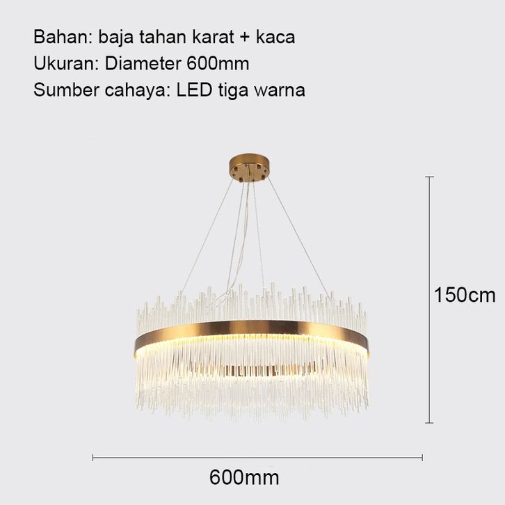 LAMPU GANTUNG KRISTAL RUANG TAMU 60/80CM CHANDELIER RUANG TAMU 3 WARNA MEWAH GAYA LAMPU GANTUNG MINIMALIS HIAS NORDIK