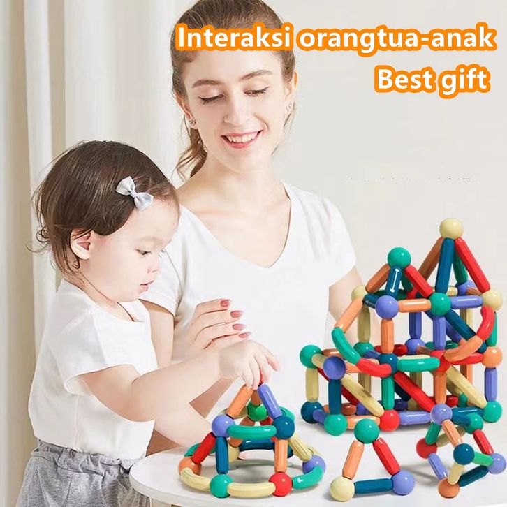 NEW FUNTOY 25/36/42/64 DIY Mainan Magnet Stick Balls Magnetic Building Blocks Puzzle Kreatifitas Toys Edukasi