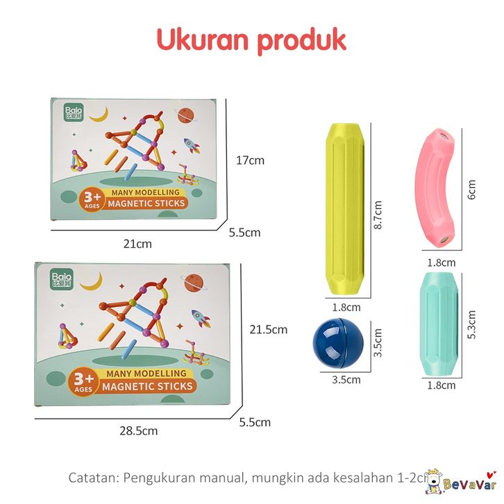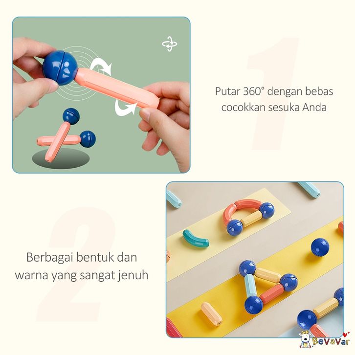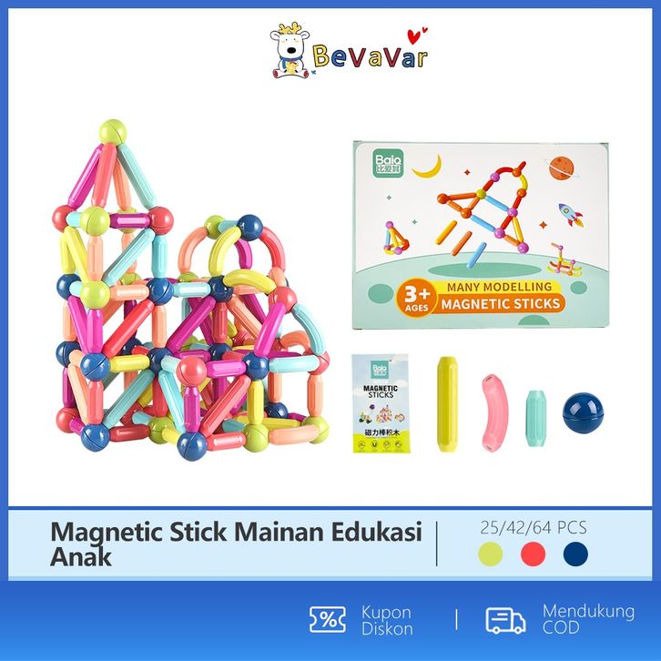 TERLARIS BEVAVAR 25/42/64 PCS Magnetic Stick Merakit Mainan / Magnetic Stick Block Mainan Edukasi Anak ucemnf