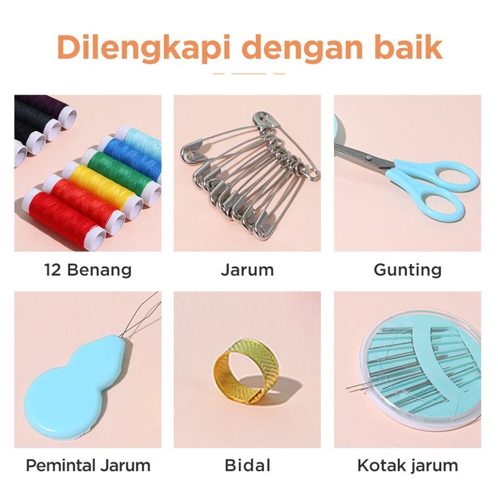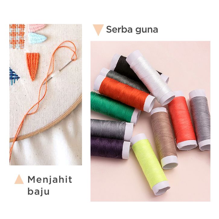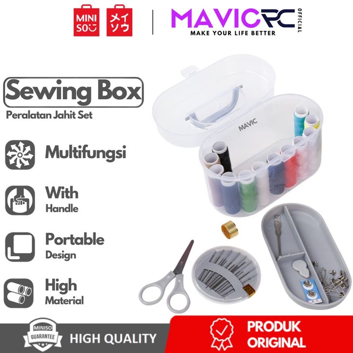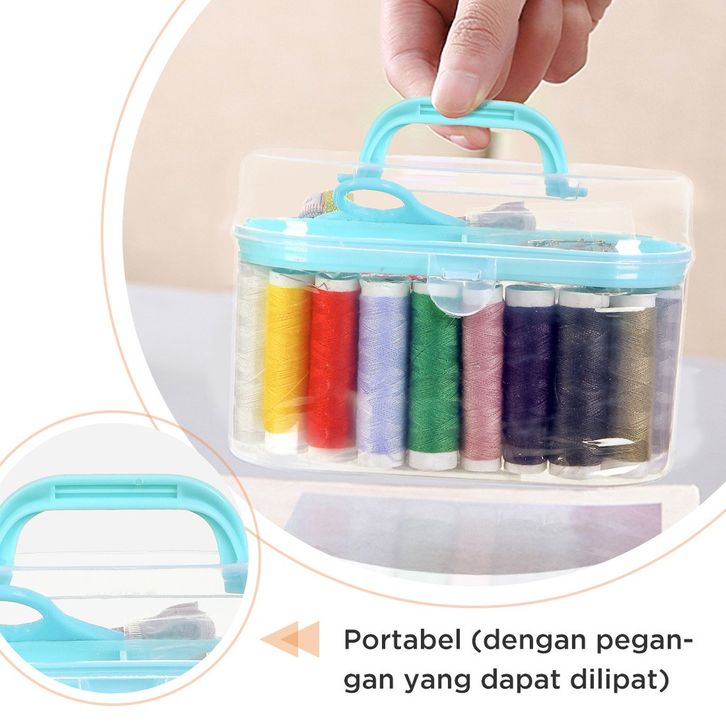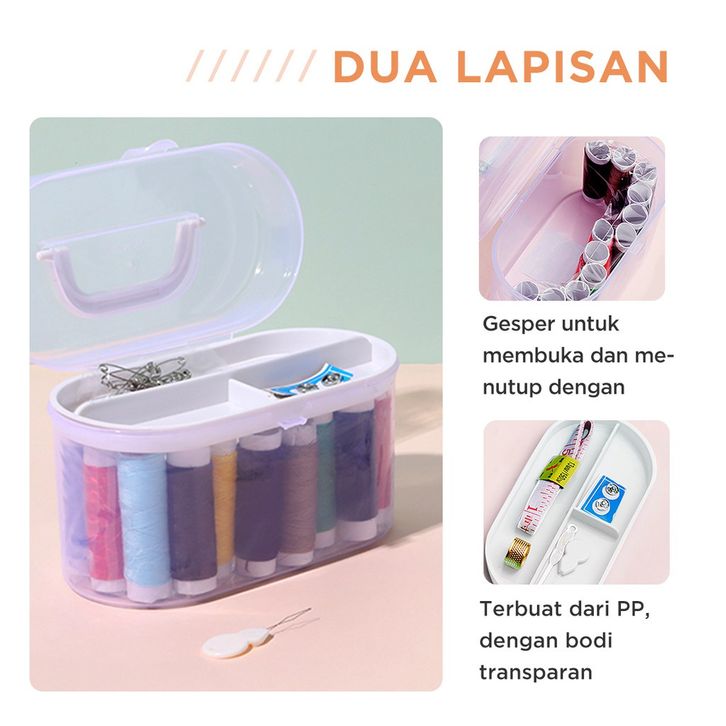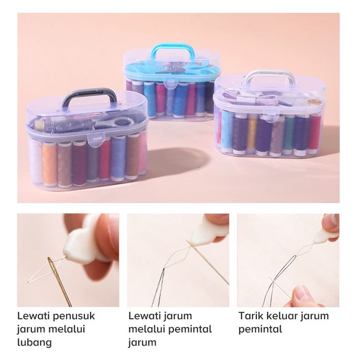 TERBARU MINISO Set Kotak Alat Jahit DIY 10 Warna Benang Kotak Box Benang Needlework Peniti Gunting Meteran
