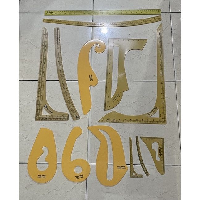 GROSIR 1 set isi 13 Penggaris pola jahit merk polaris FREE mata nenek dan pentul piring esahc